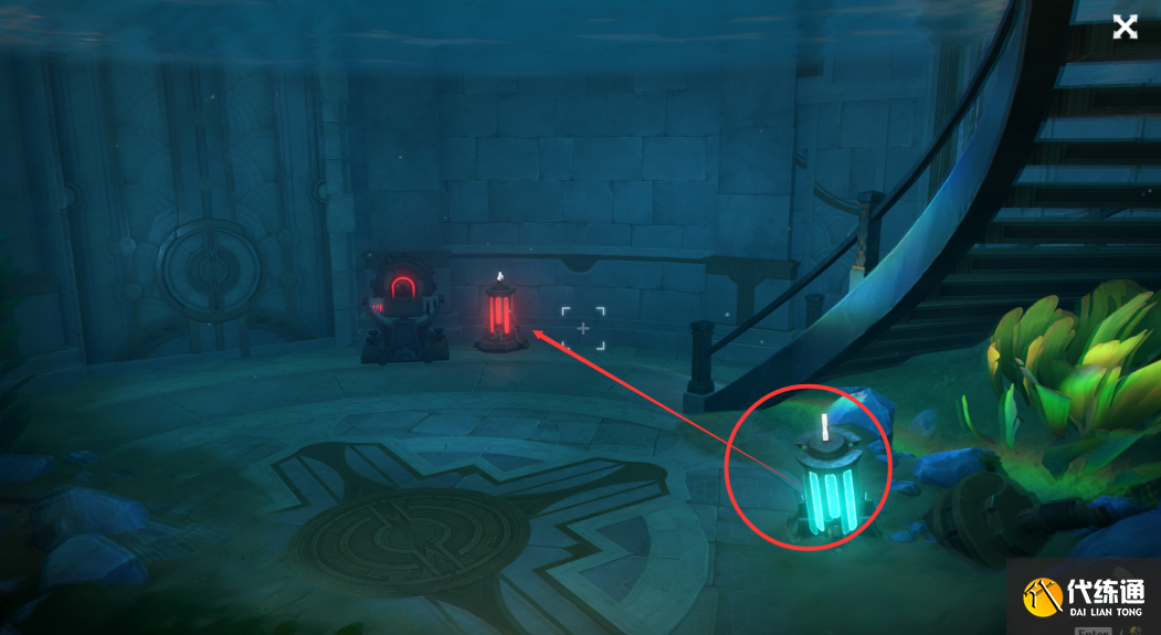 7.從側(cè)門出來后來到水底,操作這個(gè)機(jī)關(guān)。