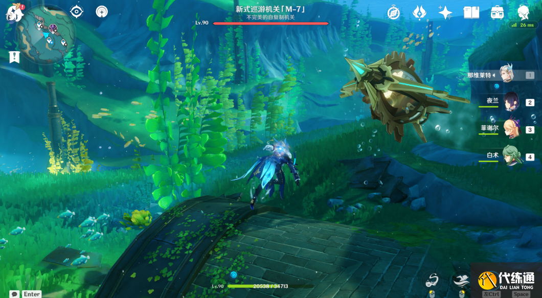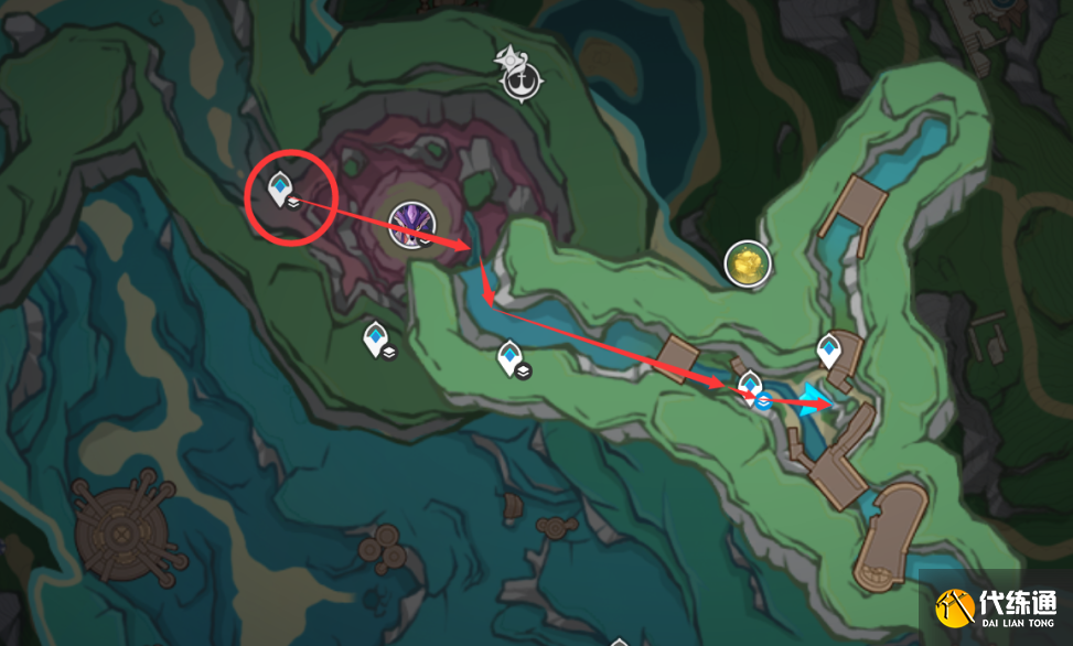 元件④:如果這個水下傳送點沒解鎖,可以從雷麒麟那邊出發,從水潭跳下后經由水道可以到達這個區域開傳送點,地圖上是不顯示的哦。拾取地上的雞腿后,擊敗發條機關。