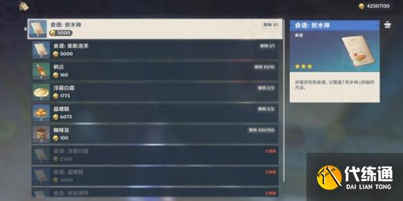 在楓丹咖啡館購買2張新食譜,芙寧娜特色料理:「普茹斯蒂司」用4.2新增食譜「致水神」制作。