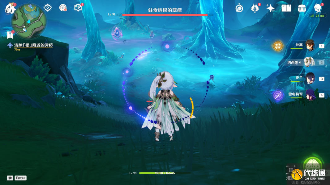 4.會看到一處魔物——蛀食樹根的孽瘤,先擊敗附近的獸境獵犬,再利用章魚的能力,就可以將孽瘤消滅掉