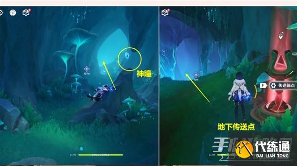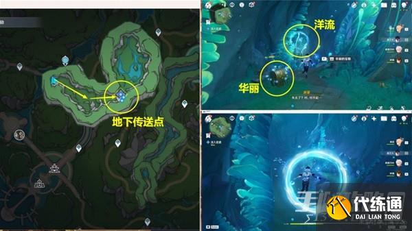 (3)來到最底下的水下,下面有個華麗寶箱可以拿了,然后進入旁邊的【洋流】,后面還會出現藍色加速圈,一直追蹤任務去【地下傳送點】任務點位置即可,路上有1個神瞳順便拿了