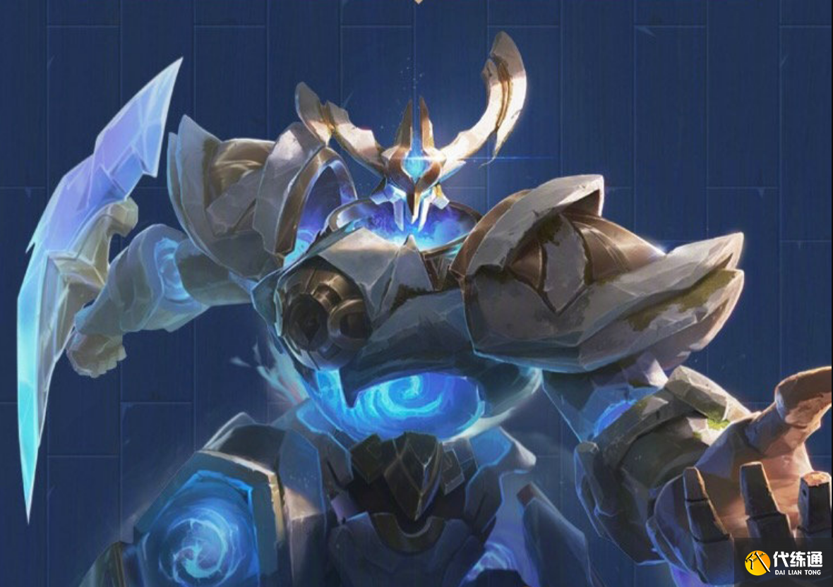 第三個,一個像武器的彎曲的東西,其實是墨子的頭,標(biāo)志著進(jìn)階版戰(zhàn)令1級的獎勵——墨子的“神跡守衛(wèi)”皮膚,這個皮膚和之前鐘馗的神跡守衛(wèi)”皮膚是一個系列,我們的墨子和鐘馗一起守護(hù)著峽谷,在風(fēng)格是一脈相承的,色調(diào)是以藍(lán)色為主。