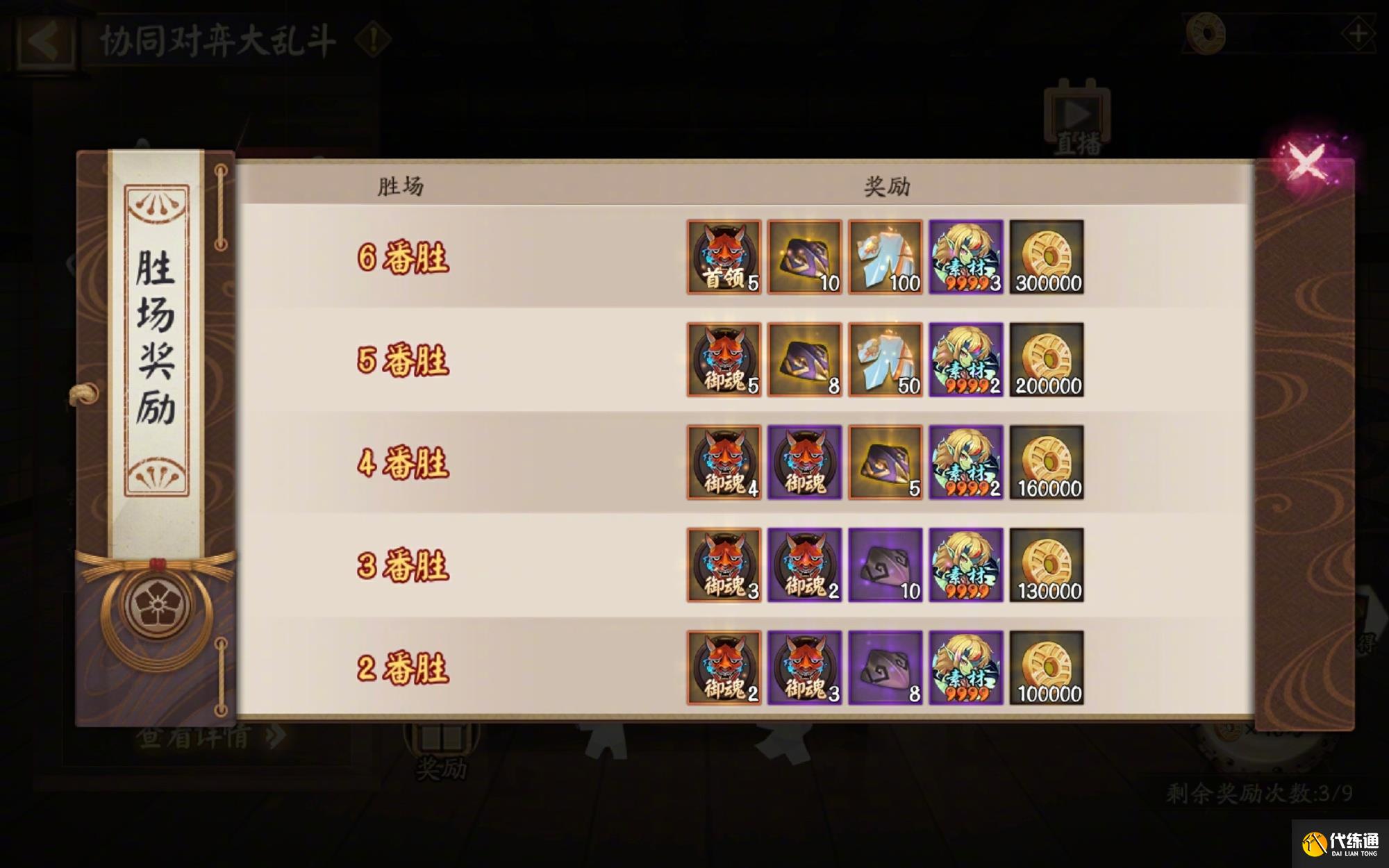 ※大人擁有獎(jiǎng)勵(lì)次數(shù)時(shí)根據(jù)勝場(chǎng)次數(shù)可獲得「隨機(jī)六星御魂」「大蛇的逆鱗」「被遺忘的繪本」等獎(jiǎng)勵(lì)。