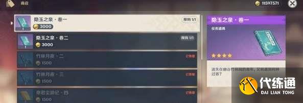 與萬文集舍老板紀芳對話,即可購買隱玉之泉卷1和卷2,完成全套收集成就。