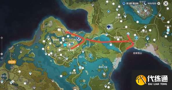 這里分別對應地圖上的風龍廢墟,龍脊雪山,絕云間,璃月城。