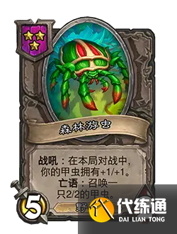改動后:5/2。戰吼:你的甲蟲在本局對戰中擁有+1/+1。亡語:召喚一只2/2的甲蟲。