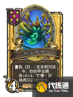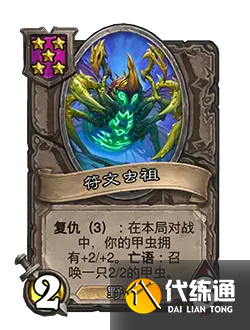 改動后:2/8。復仇(3):你的甲蟲在本局對戰中擁有+2/+2。亡語:召喚一只2/2的甲蟲。