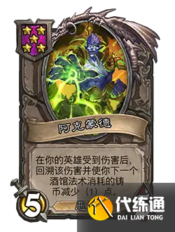 改動后:[等級5]5/5。在你的英雄受到傷害后,回溯該傷害并使你下一個酒館法術消耗的鑄幣減少(1)點。
