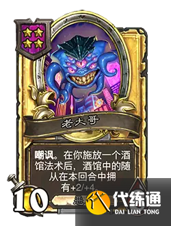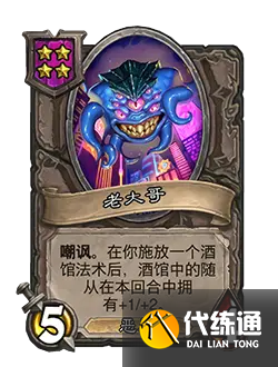 改動后:[等級4]5/4。嘲諷。在你施放一個酒館法術后,酒館中的隨從在本回合中擁有+1/+2。