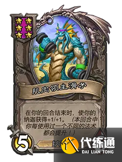 改動后:5/6。在你的回合結束時,使你的娜迦獲得+1/+1。(在本局對戰中,你每施放一個不同的法術都會提升!)