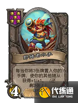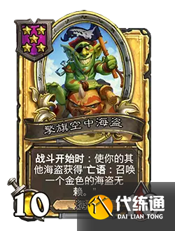 改動前:[等級4] 4/4。戰斗開始時:使你的其他海盜獲得“亡語:召喚一個1/1的海盜并使其立即發起攻擊?!?/p>