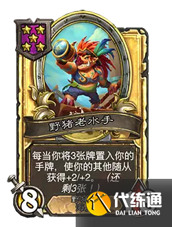 改動后:[等級5]5/5。戰斗開始時:使你的其他海盜獲得“亡語:召喚1個海盜無賴。”