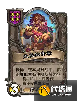 改動后:[等級4] 3/5。抉擇:在本局對戰中,你的鮮血寶石使隨從額外獲得+1/+1;或者獲取4張鮮血寶石。