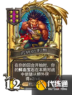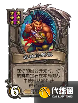 改動后:6/7。在你的回合開始時,你的鮮血寶石在本局對戰中使隨從額外獲得+1/+2。