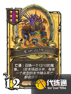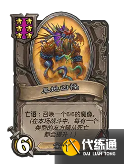 改動后:6/6。亡語:召喚一個6/6的魔像。(在本場戰斗中,每有一個類型的友方隨從死亡都會提升!)