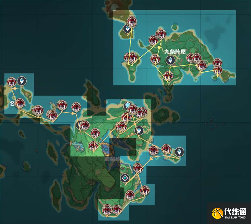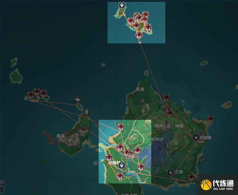 鳴神島的野伏眾主要在紺田村和北部小島這兩個(gè)區(qū)域。其他地方分布很散亂,只推薦有余力的旅行者前往刷取。