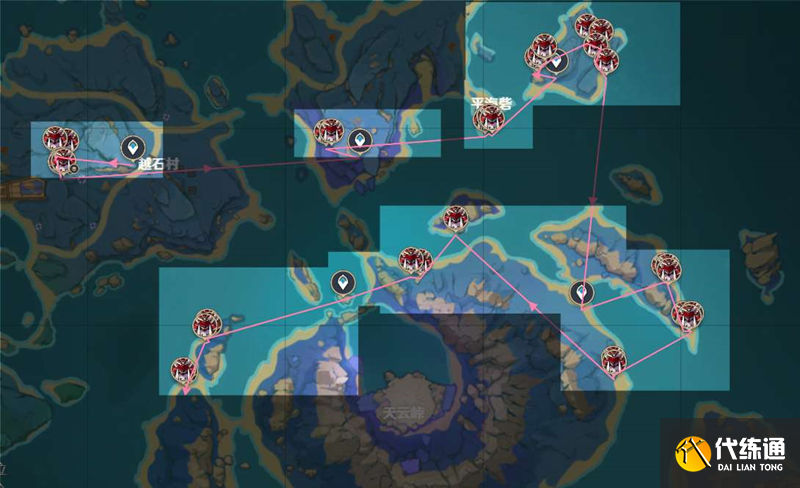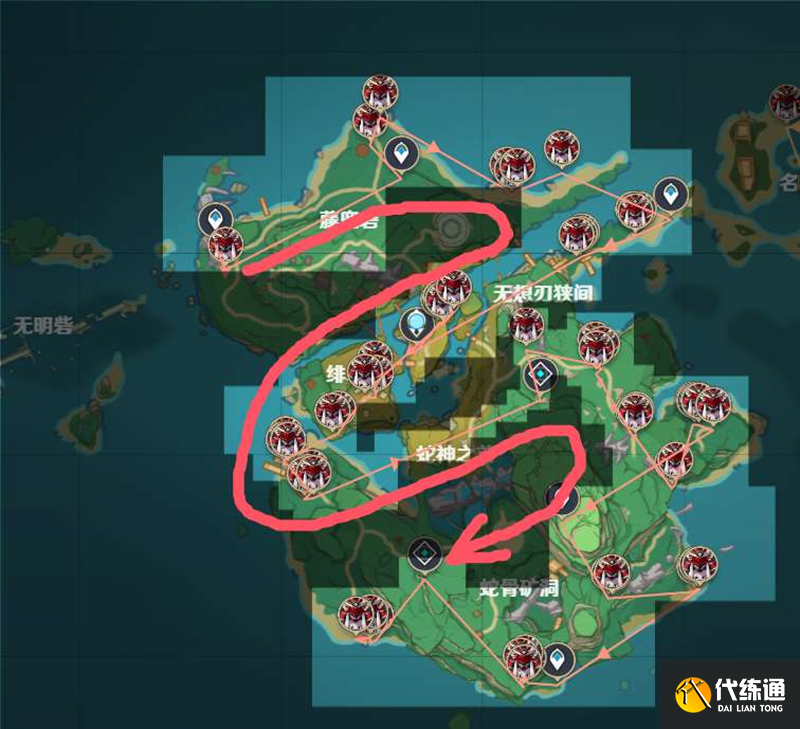 清籟島的野伏眾都在北邊這一半部分。推薦分成3~4片區(qū)域進(jìn)行刷取。