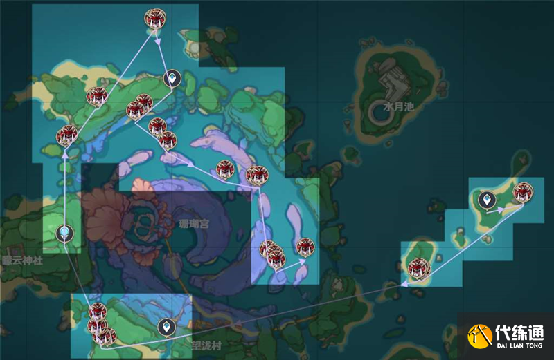 珊瑚宮的中心區(qū)域沒(méi)有多少野伏眾,主要還是存在于外圍區(qū)域。詳細(xì)路線看圖。