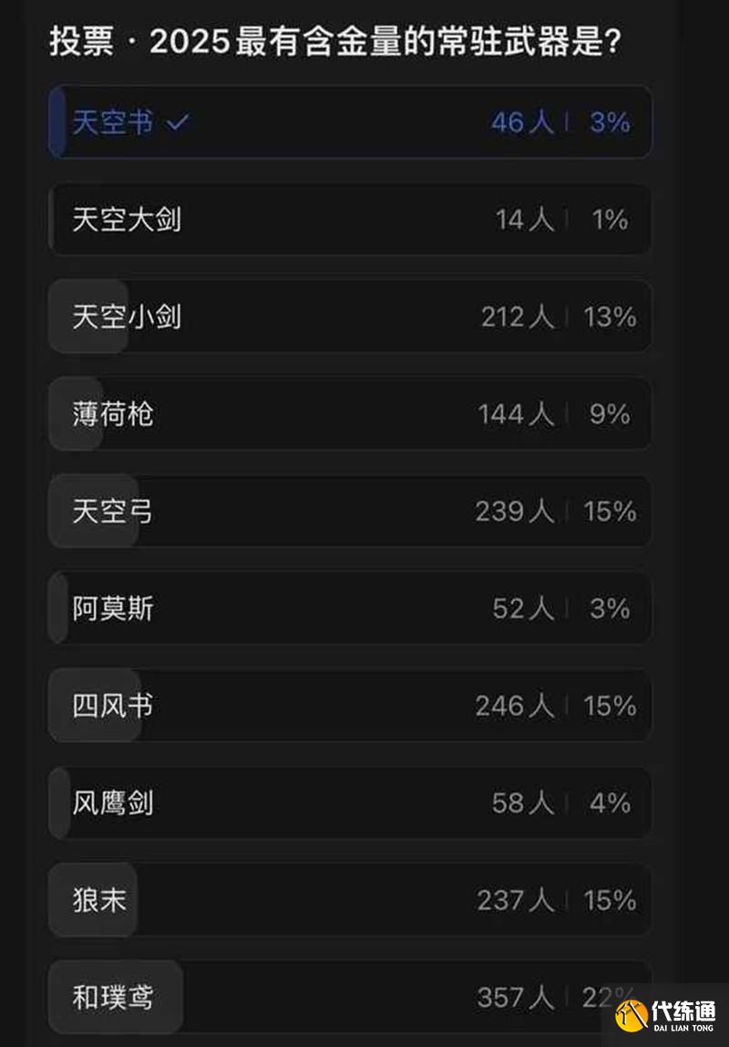 天空弓作為常駐武器之一,雖然泛用性不錯,但玩弓的旅行者相對較少,且弓箭角色中很多都是輔助角色。四星弓箭武器中有很多比五星弓箭更泛用、強度更高的存在,這也在一定程度上影響了天空弓的受歡迎程度。