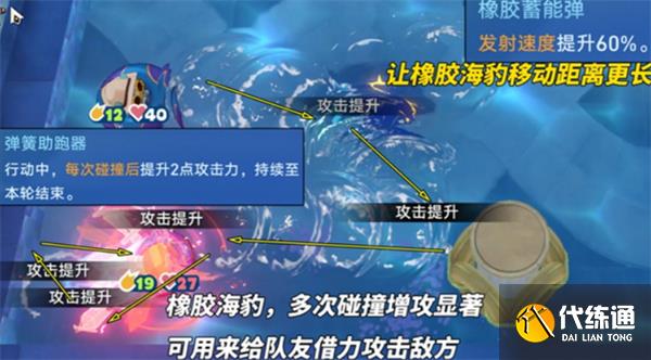 向橡膠海豹碰撞,借高攻擊力制造爆發;