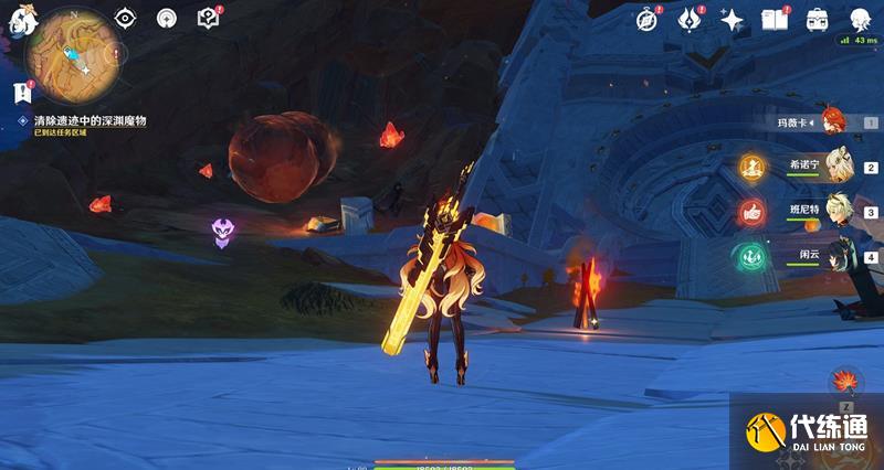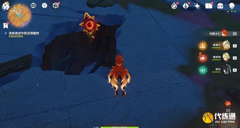 旅行者們首先需要打開地圖,傳送到石火墜隕處的傳送點,到達后就能觸發任務。在任務開始后,要先將周圍的敵人擊敗,然后與現場的NPC進行對話。接著進入遺跡內部,清理里面的敵人。
