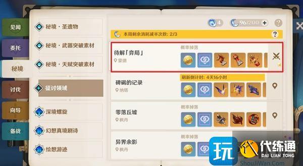 1、打開征討領域,選擇弈局這個周本。