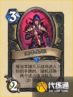 · 改動后:[法力值消耗2]造成2點傷害。發現一張具有黑暗之賜的戰士隨從牌。