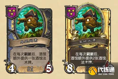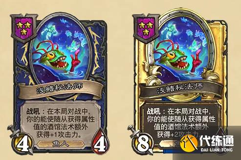 · 改動后:4/4。戰吼:在本局對戰中,你的能使隨從獲得屬性值的酒館法術額外獲得+1攻擊力。