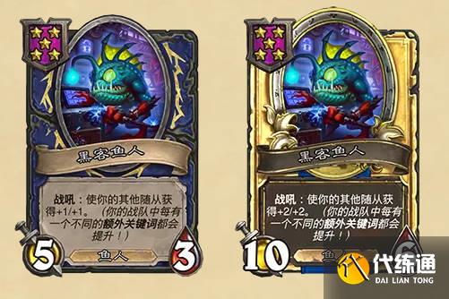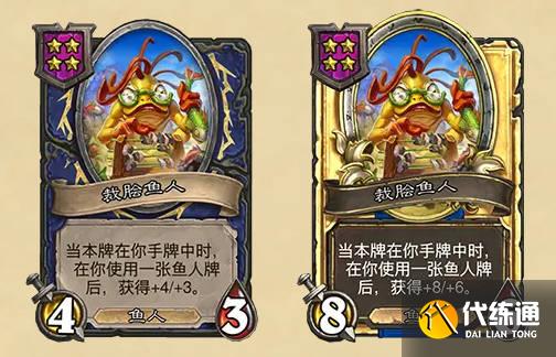 · 改動前:4/4。戰吼:你每控制一個魚人,使一個友方魚人獲得+4/+4。