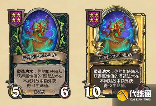 · 改動后:[1鑄幣]在你使用沒有類型的隨從牌后,使每個類型的各一個友方隨從獲得+7/+7。
