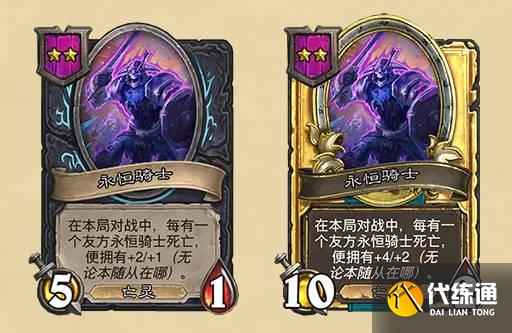 · 改動后:在本局對戰中,每有一個友方永恒騎士死亡,便擁有+2/+1(無論本隨從在哪)。