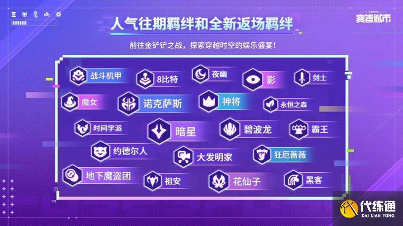 本次派對時光機模式將帶來大量經(jīng)典羈絆的返場,包括但不限于地下魔盜團、戰(zhàn)斗機甲、狂厄薔薇、約德爾人、爵士樂、金鱗龍等。這些羈絆將與賽博城市的主題完美融合,創(chuàng)造出全新的玩法策略。