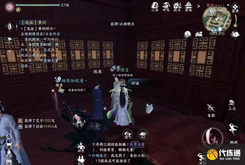 再去杭州(1278-833)對話藍實,拿到信物后前往(1102-898)的橋上找到桂枝,提交下品止血散(可以在商城-集市-江湖身份里購買)