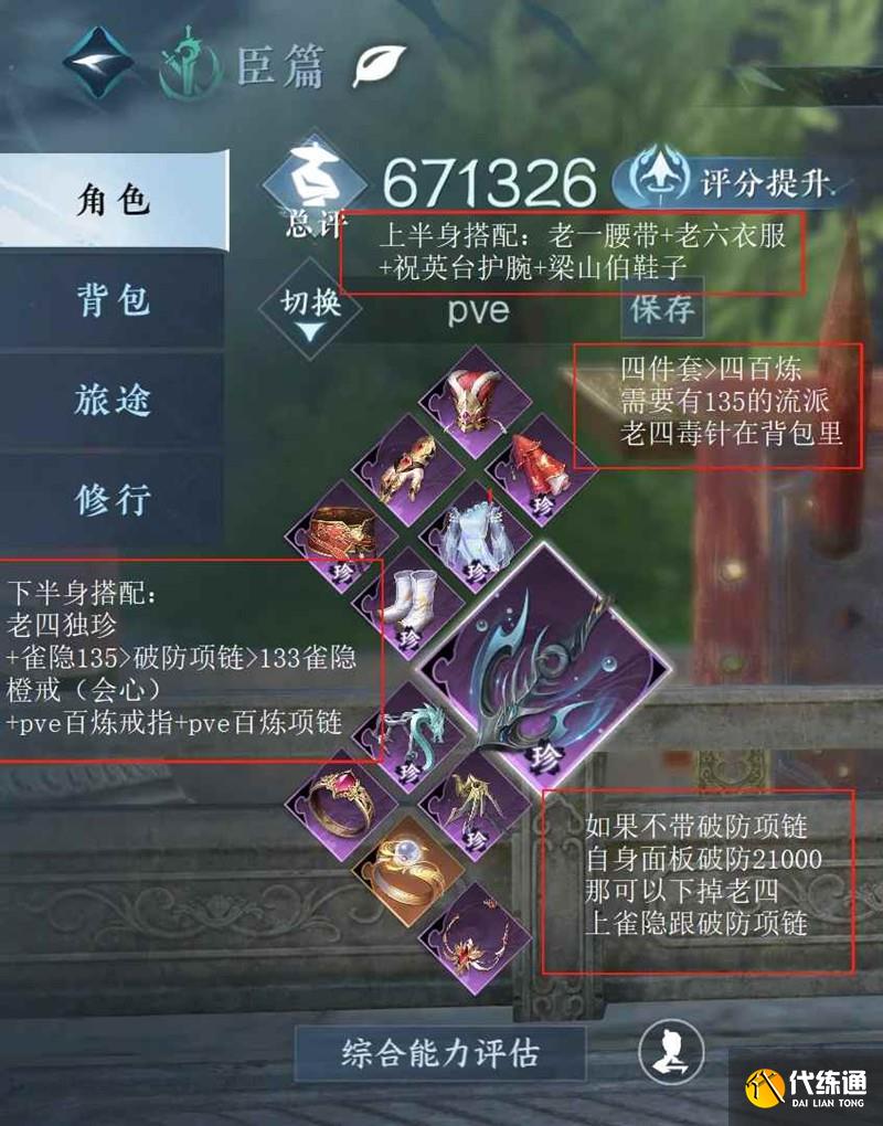 下半身搭配:老四獨珍+(雀隱135>破防項鏈>133雀隱)+橙戒(會心)+pve百煉戒指+pve百煉項鏈