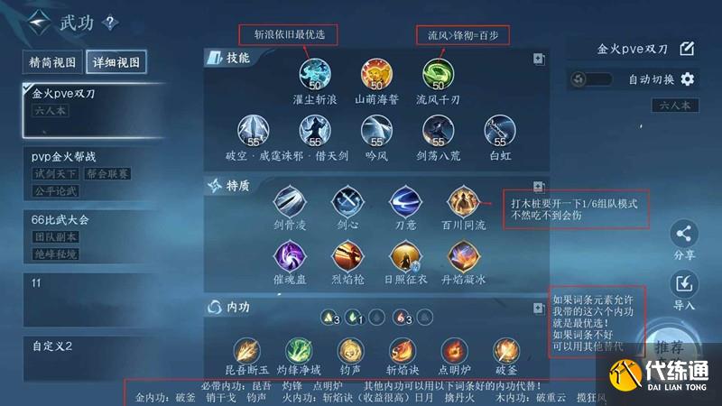 如果詞條元素允許我圖中帶的這六個內功就是最優選!如果詞條不好可以用其他替代