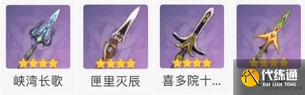 前面提到雷電將軍是可以帶飾金或樂園堆精通玩純反應體系的,那在武器的選擇上,也會直接換成加精通的這四把武器