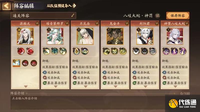 隊伍預設上限:與「式神錄」中的「隊伍預設】共用120套數量上限。