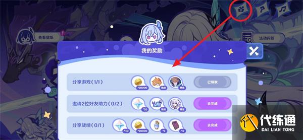 3、點(diǎn)擊【分享游戲】,可解鎖助戰(zhàn)角色達(dá)達(dá)利亞及活動(dòng)壁紙