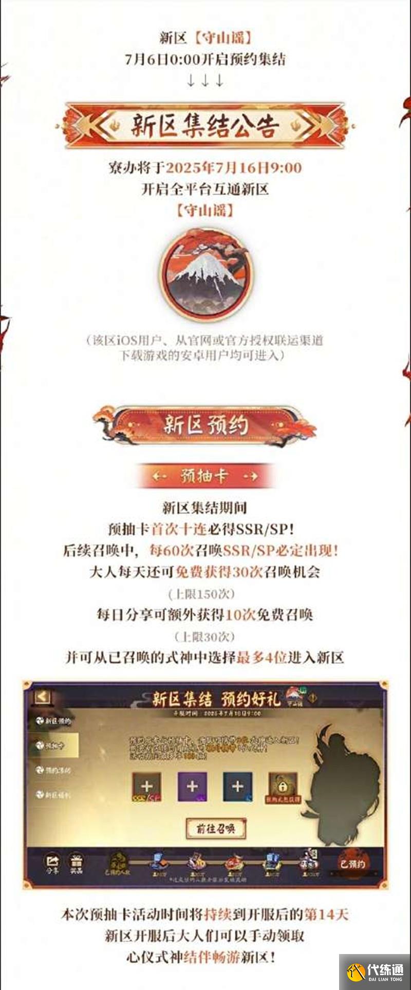 守山謠新區即將開啟,陰陽師大人們可以提前預約,享受新區福利。以上就是守山謠新區的開放時間及預約攻略。