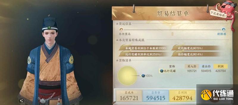 刺桐港買明前龍井賣到海蝕嶼,利潤30w+