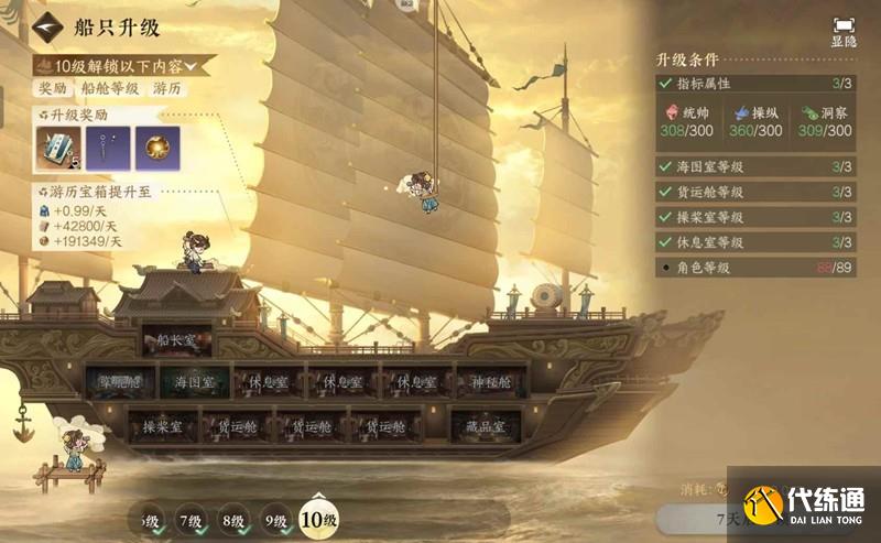 4,船員升級,優先升級金色的,然后卡到船身8級,不要先急著接海舶令任務(一周只有三次機會)。
