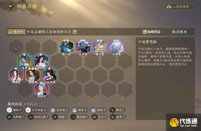 陣容優勢:不用刷新刷不出來破如防,簡單易上手,靈活性強主c可換,無腦升級湊五輔陣