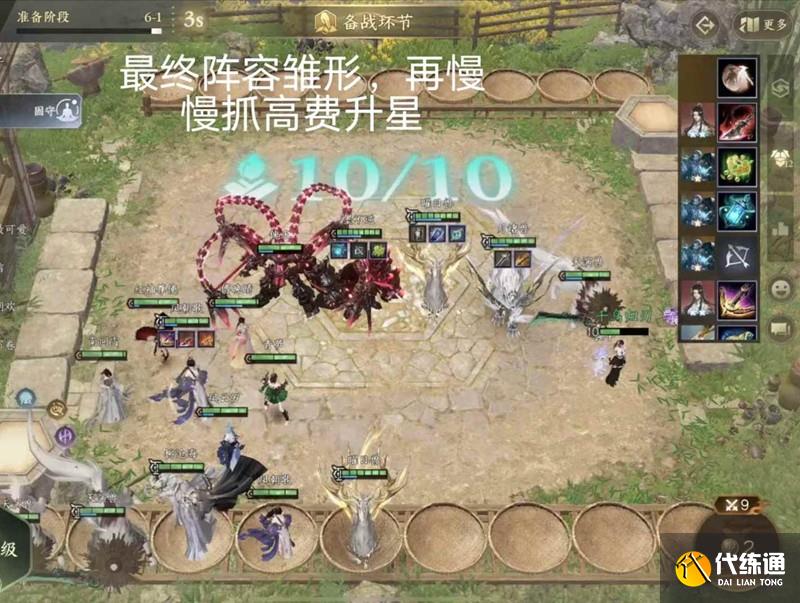 2-3升五級,此時羈絆前排已成型,右下角旗子刷到能升星的和更好的前排或輸出就換,有輔陣必拿,但不需要刻意刷新