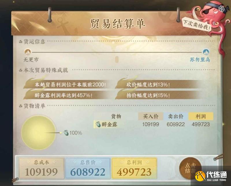 無更市買醉金露賣到蘇勿里,利潤近50w,本周最推薦路線!