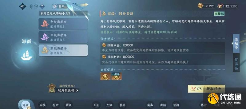 逆水寒本周航海路線推薦 航海貿易一趟50w怎么完成