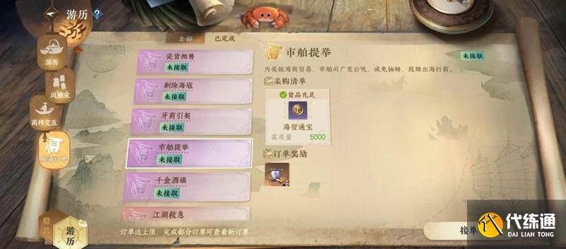 每周必做p6市舶提取,獎勵隨機刷新,可能有航海稀有金幣、內功等