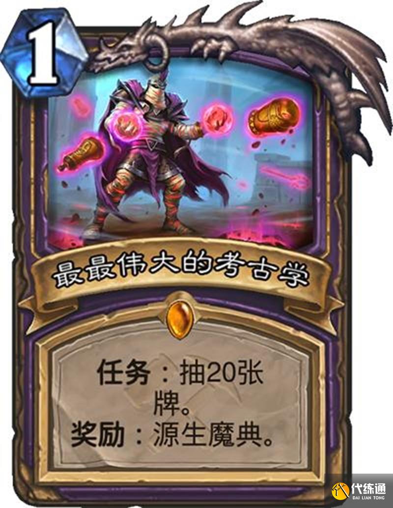 術士職業任務"最最偉大的考古學"需要抽取20張牌才能完成,完成后可以每回合獲得一張0費牌。雖然效果強力,但抽牌過程中容易導致資源枯竭。
