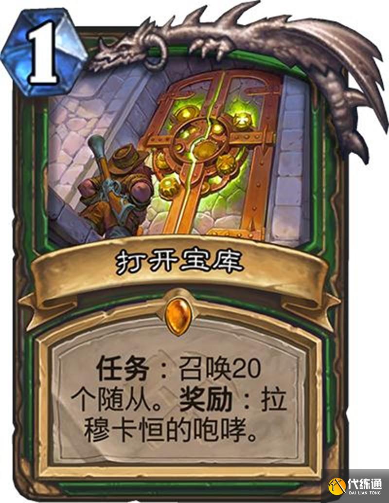獵人職業"打開寶庫"任務需要召喚30個隨從,完成后可以獲得每回合召喚2個4/3隨從的效果,但獵人更傾向于快攻節奏。