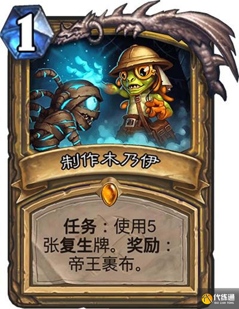圣騎士"制作木乃伊"任務需要復活5個友方隨從,完成后可以復制一個2/2的隨從。目前騎士的復活體系較弱,需要更多優質亡語隨從來配合。
