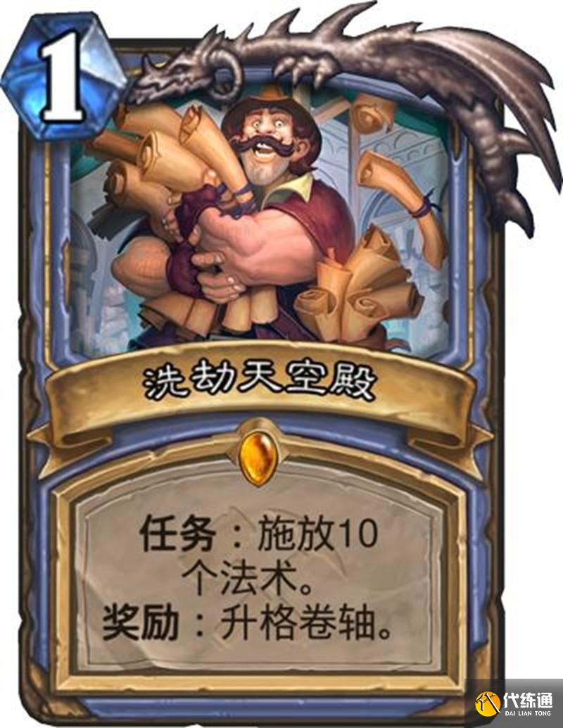 法師"洗劫天空殿"任務需要施放10個法術,完成后每回合獲得一個隨機法術。這個任務兼容性很強,適合各種法師卡組。